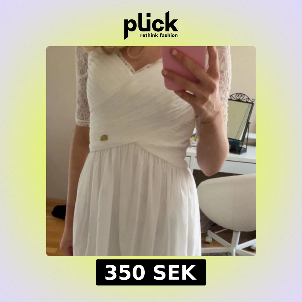 Gullig vit mini klänning från Chiara Forthi med spets på överdelen och trekvartsärm. Inga defekter, klänningen har dragkedja i ryggen och är perfekt för skolavslutning/student.💕