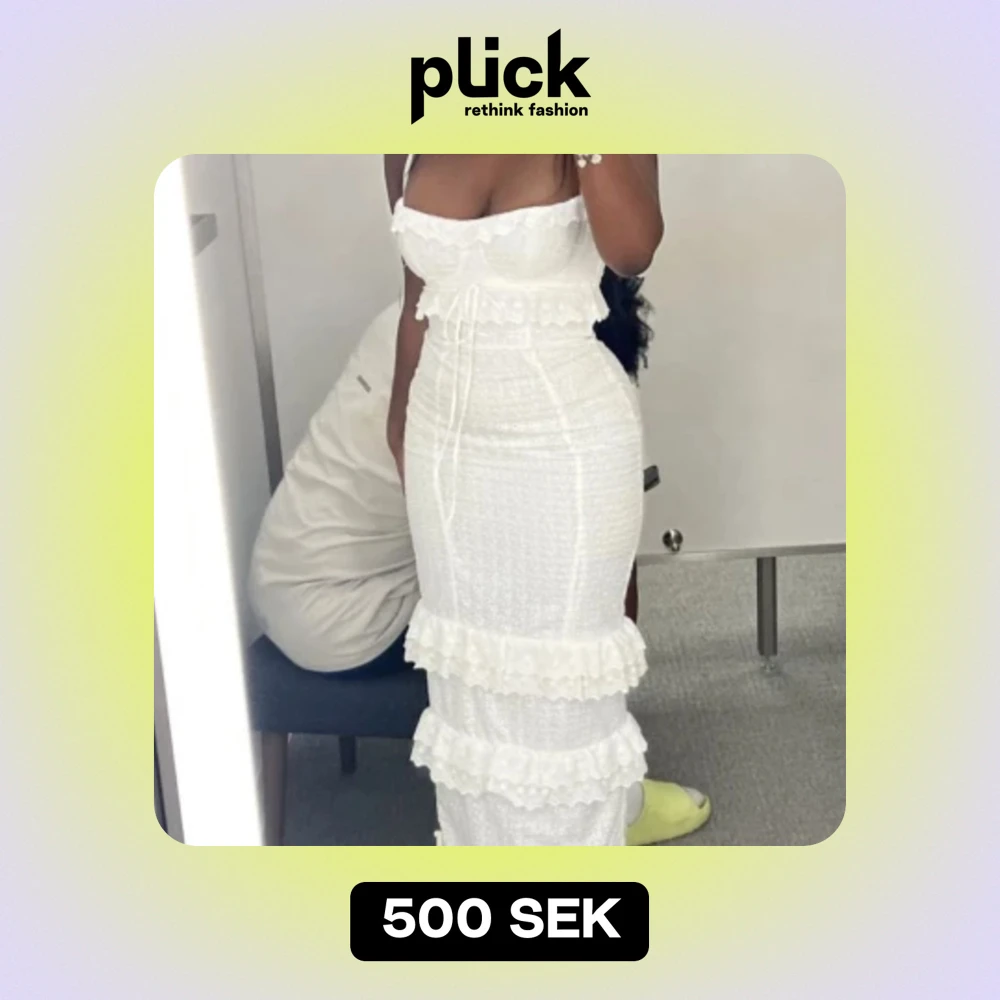Älskar den här kläningen, passar någon i stolek M🥂. Den är helt ny, har prövat men inte använt. Kläningen är lång💕Jag är 156 cm,kommer lite brett runt brösten, bilden är inte min. Köpte den för 640kr inklusive tull.. kan mötas upp❤️