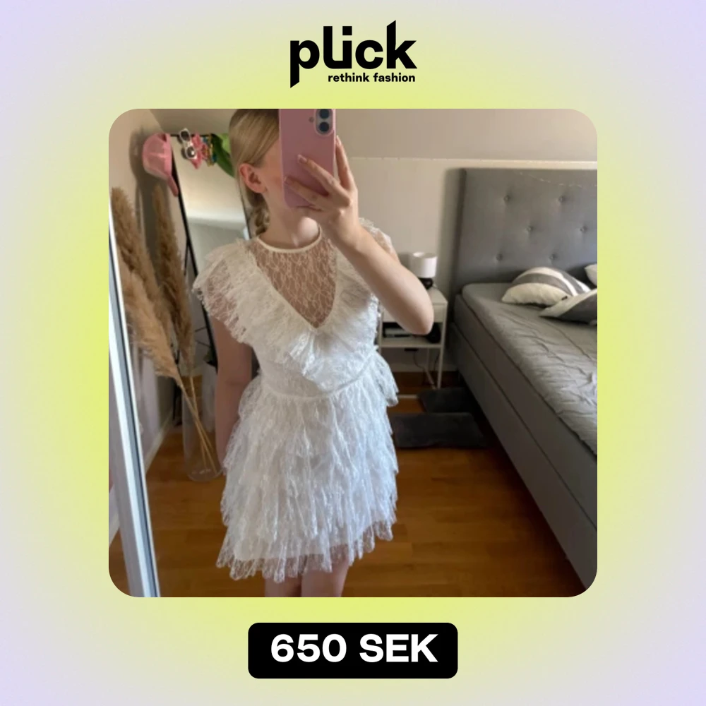 Säljer min studentklänning i spets från bubbleroom, använde den endast på frukosten och mottagningen✨Ser lite annorlunda ut än den på hemsidan då jag köpte den första modellen(lite annorlunda mönster, men fler knappar i ryggen)✨Nypris 999kr✨