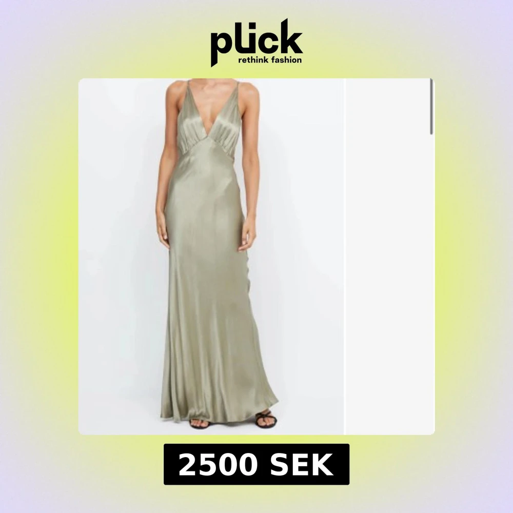 Klänning från bec + bridge. Perfekt för studentbal, examen, middagar, bröllop eller andra event. Elegant grön långklänning i satin med djup v-ringning och smala axelband. Använd vid endast ett tillfälle och köptes på bec + bridge för ca 4000kr med tullavgifter mm.