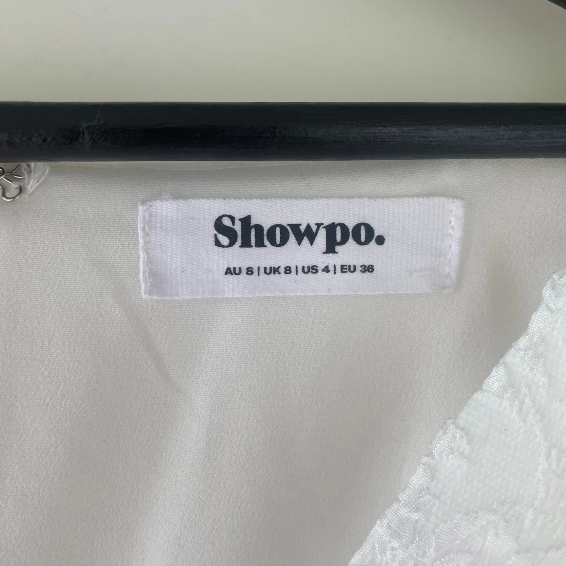 Superfin vit klänning från Showpo i storlek 36. Endast använd 1 gång, på studenten. Superfin på midsommar eller student ❣️ nypris 1100kr exkl tull avgift