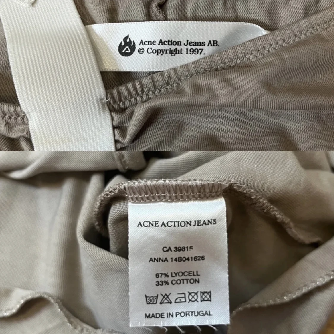 Unik Acne klännning från tidigt 2000 tal. Stretchig och skön med coola sömmar och stuk.