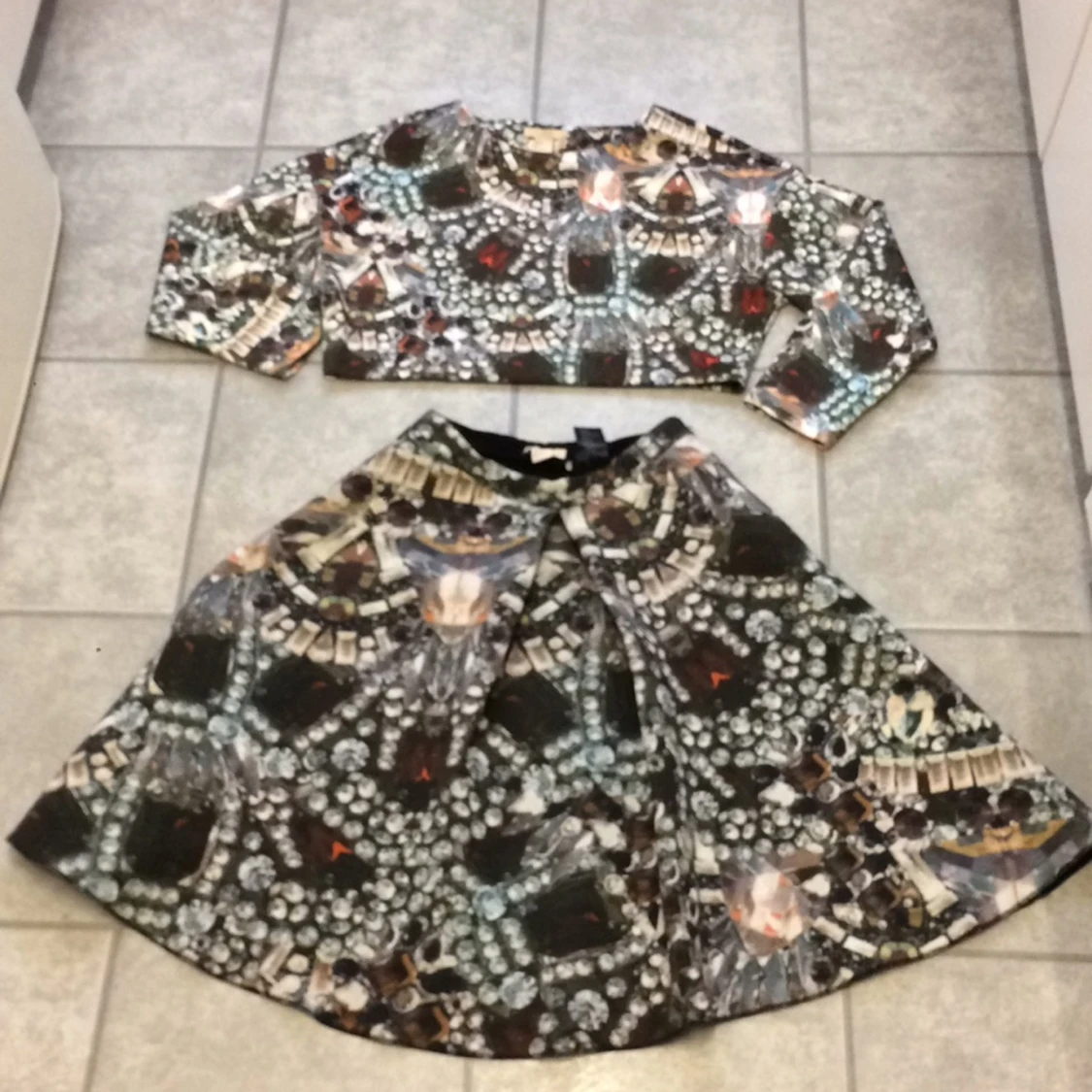 Super coolt set med vippig kjol och kort topp, köps som set eller separat. 80 kr/del eller 150 kr för hela setet. Jättefint skick.