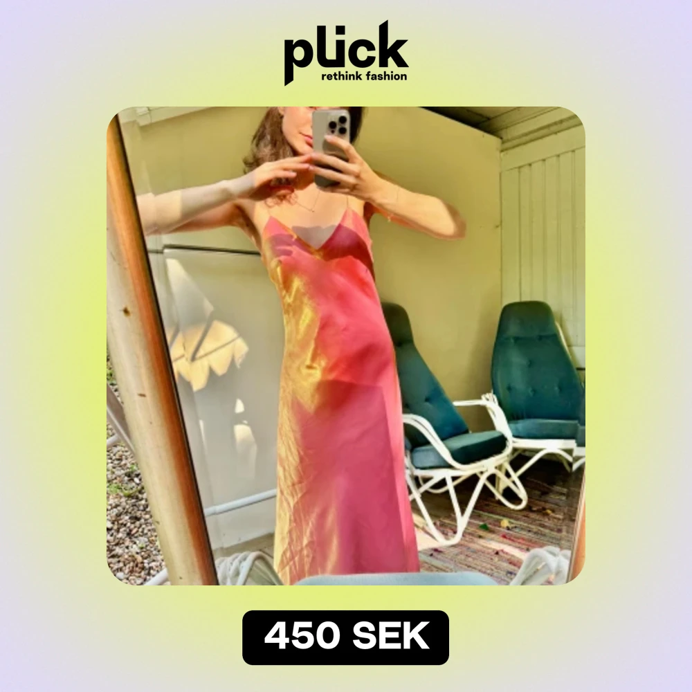 Säljer min super fina balklänning i en aprikos, rosa skimmarande färg. Lite figursydd vid midjan annars rak i passformen. Går hela vägen ner i backen på mig som är 168. Frakt tillkommer Skriv vid intresse 🫶🏻
