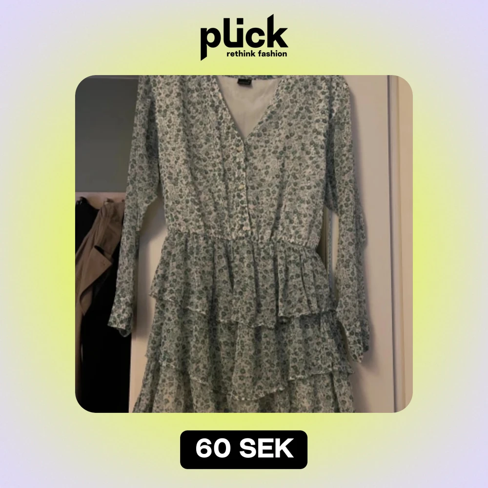 Säljer denna superfina blommiga klänningen, använd två gånger. Säljs då den är för stor. Pris går att diskutera.