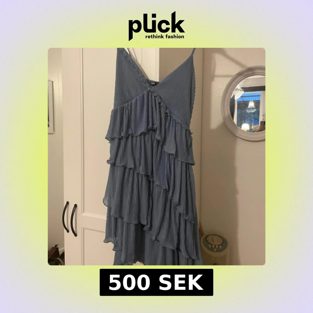 Supersöt blå kortklänning från Zara med tunna axelband och volanger. Perfekt inför sommaren!!✨Aldrig använd så den är precis som ny!!💕Storlek S. Bara att skriva om ni vill ha fler bilder eller om ni har frågor🩷