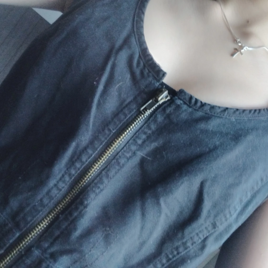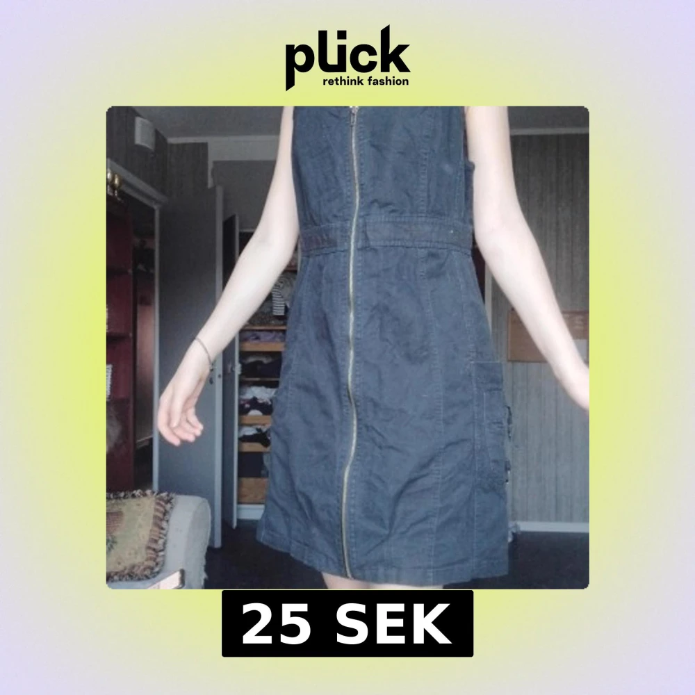 Svart ärmlös kortklänning med grov dragkedja framtill och coola fickdetaljer på sidorna. Klänningen har en enkel, rak passform och är tillverkad i ett stadigt bomullstyg. Perfekt för dig som gillar en stilren och edgy look.