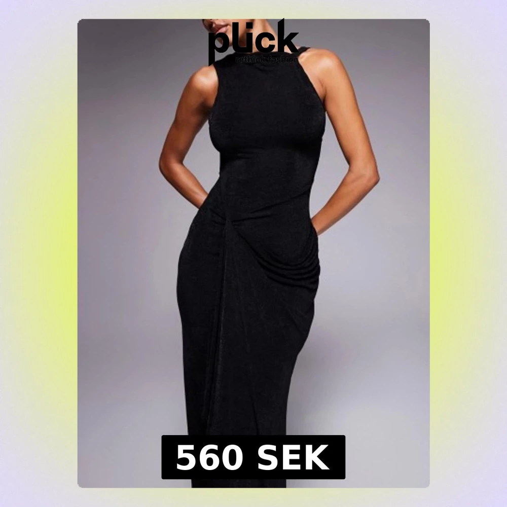 Aldrig använd, prislapp kvar. Supersnygg svart långklänning med asymmetrisk axel och slits på sidan. Klänningen har en tight passform och cool drapering vid höften. Materialet är mjukt och stretchigt. Modellen har storlek 36