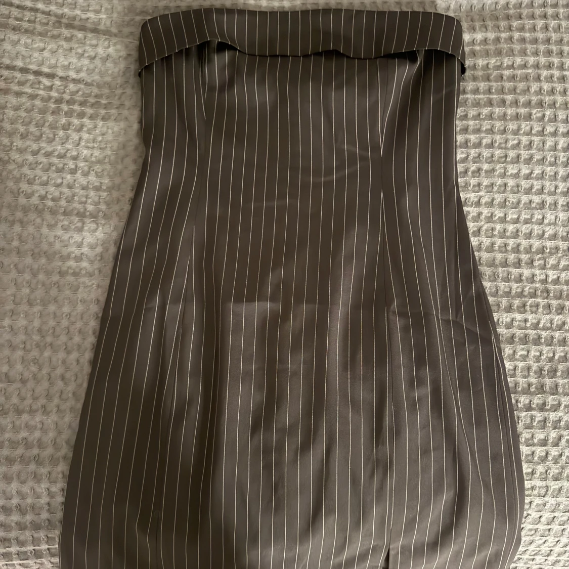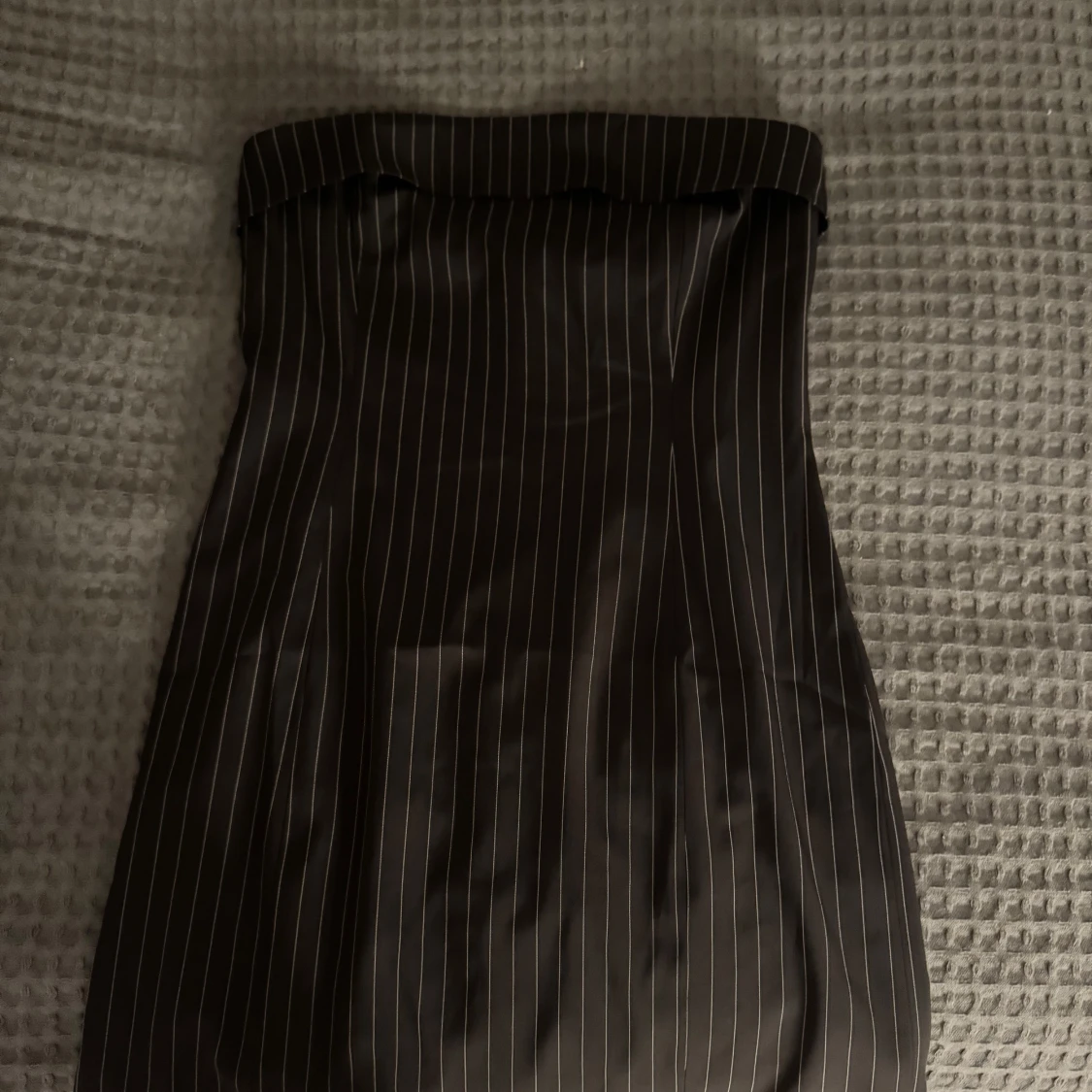 Snygg svart axelbandslös klänning med vita tänder. Klänningen har en tubformad design och är i storlek M. Säljer då den är för stor. Aldrig använd med prislapp, köpt för 499🫶