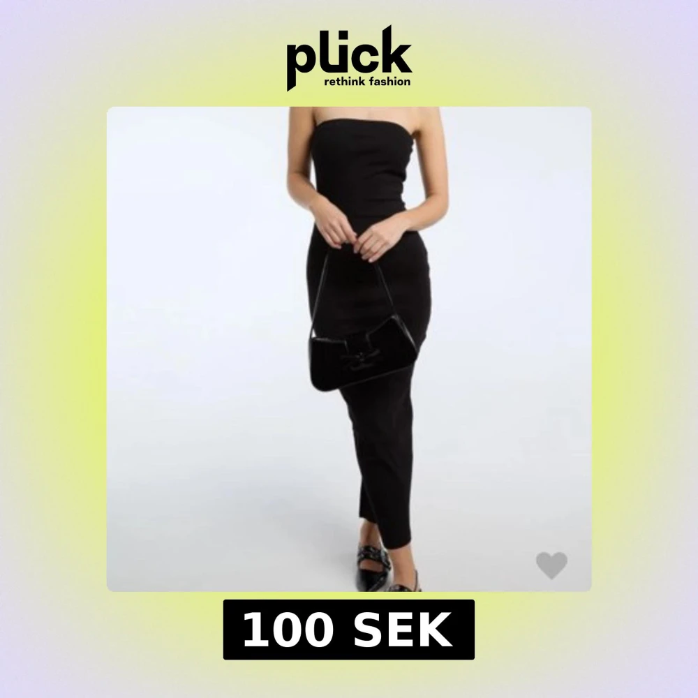Supersnygg svart axelbandslös långklänning med tight passform och slits bak. Klänningen är enkel och stilren, perfekt för dig som gillar minimalistisk look. Materialet ser ut att vara stretchigt och följsamt, vilket ger en smickrande siluett.