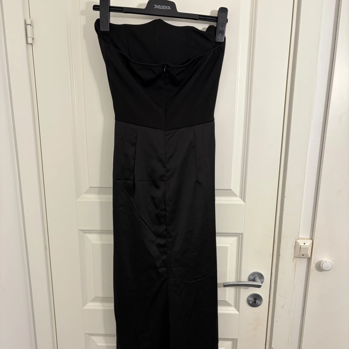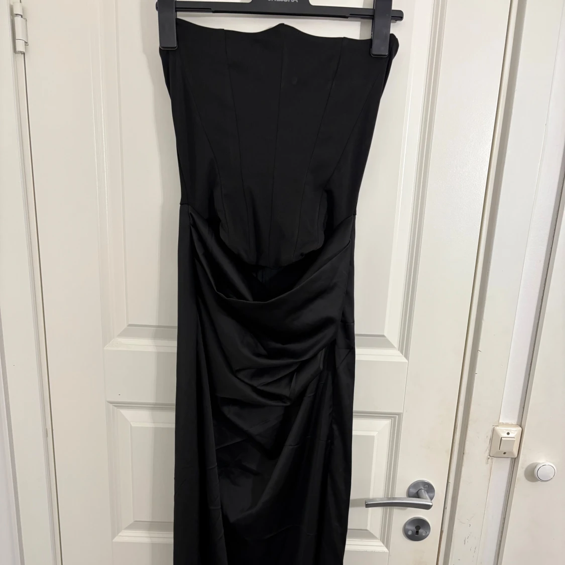 Svart korsettklänning med figurnära passform och draperad midja. Korsetten är stretchig. I stl XS och aldrig använd därav säljes. Minns inte vart den köptes tyvärr.