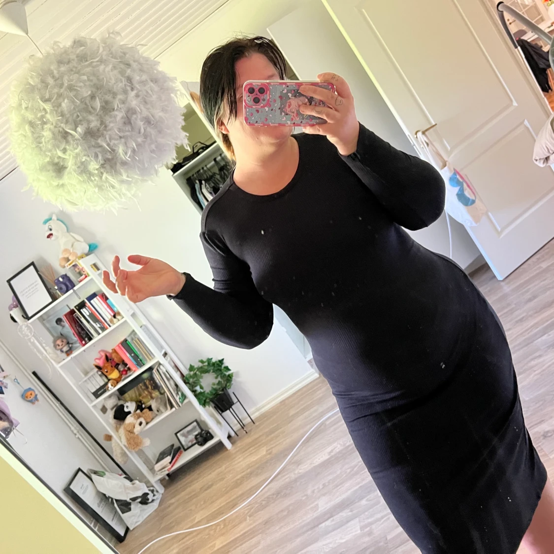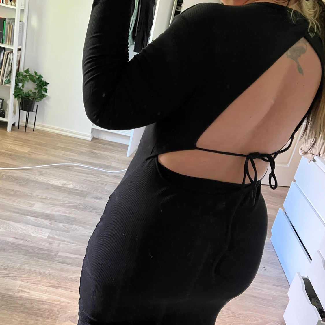 Ribbad klänning. Midi modell. Öppen rygg med snörning. Normal i storleken. Väldigt stretchig. Använd fåtal gånger, mest hängt i en garderob. ✨3 för 2 på allt! Samfraktar så skicka pm vid köp, använd ej köp nu! ✨