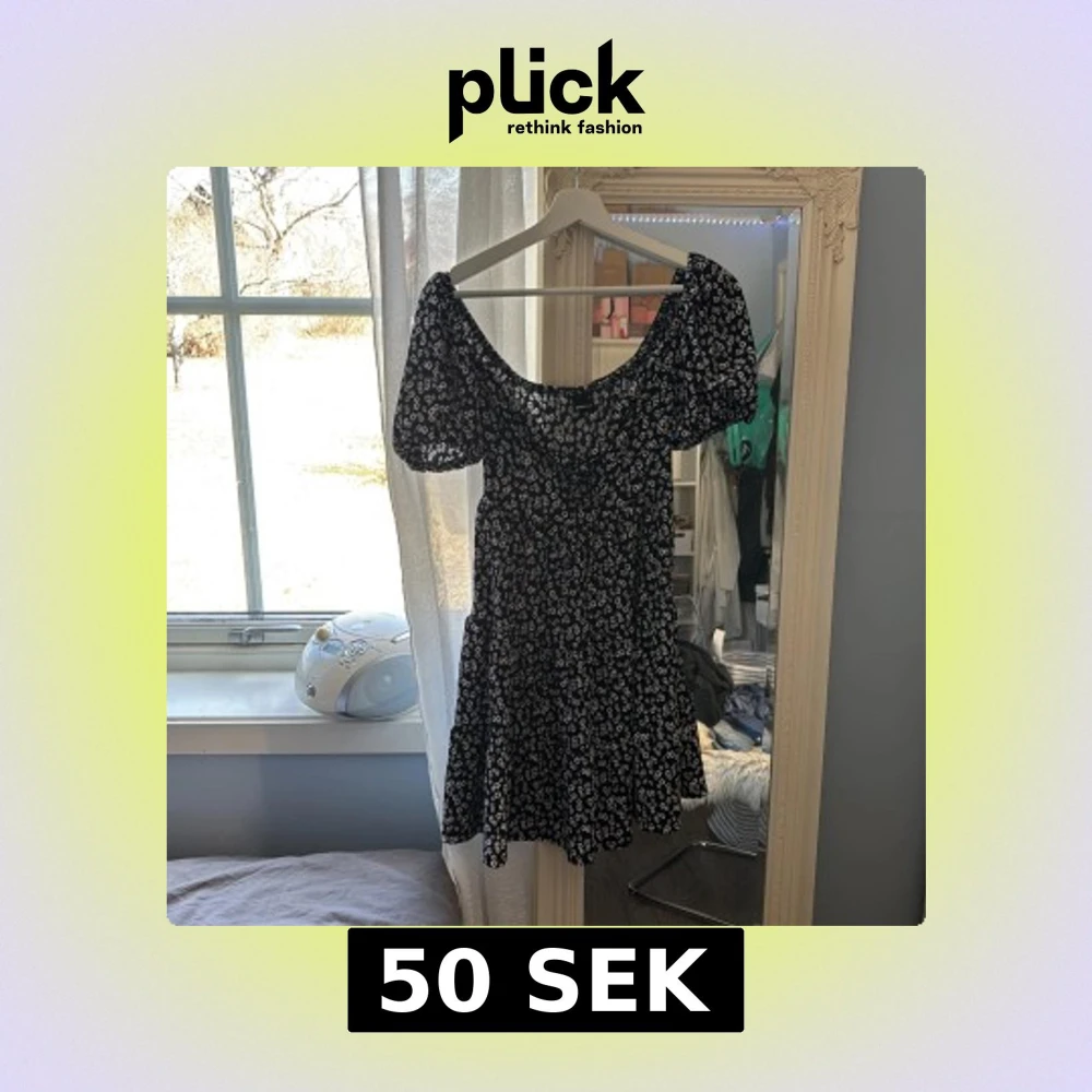 Säljer en söt svart klänning med vita blommor från Gina Tricot. Klänningen har korta puffärmar❣️❣️ Storlek Xs!!❣️❣️