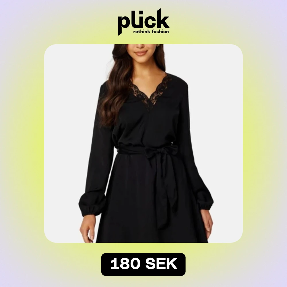 En svart klänning med spets från bubbleroom storlek xs. Aldrig använt, prislappen sitter kvar. Säljer pågrund av att jag har för många.
