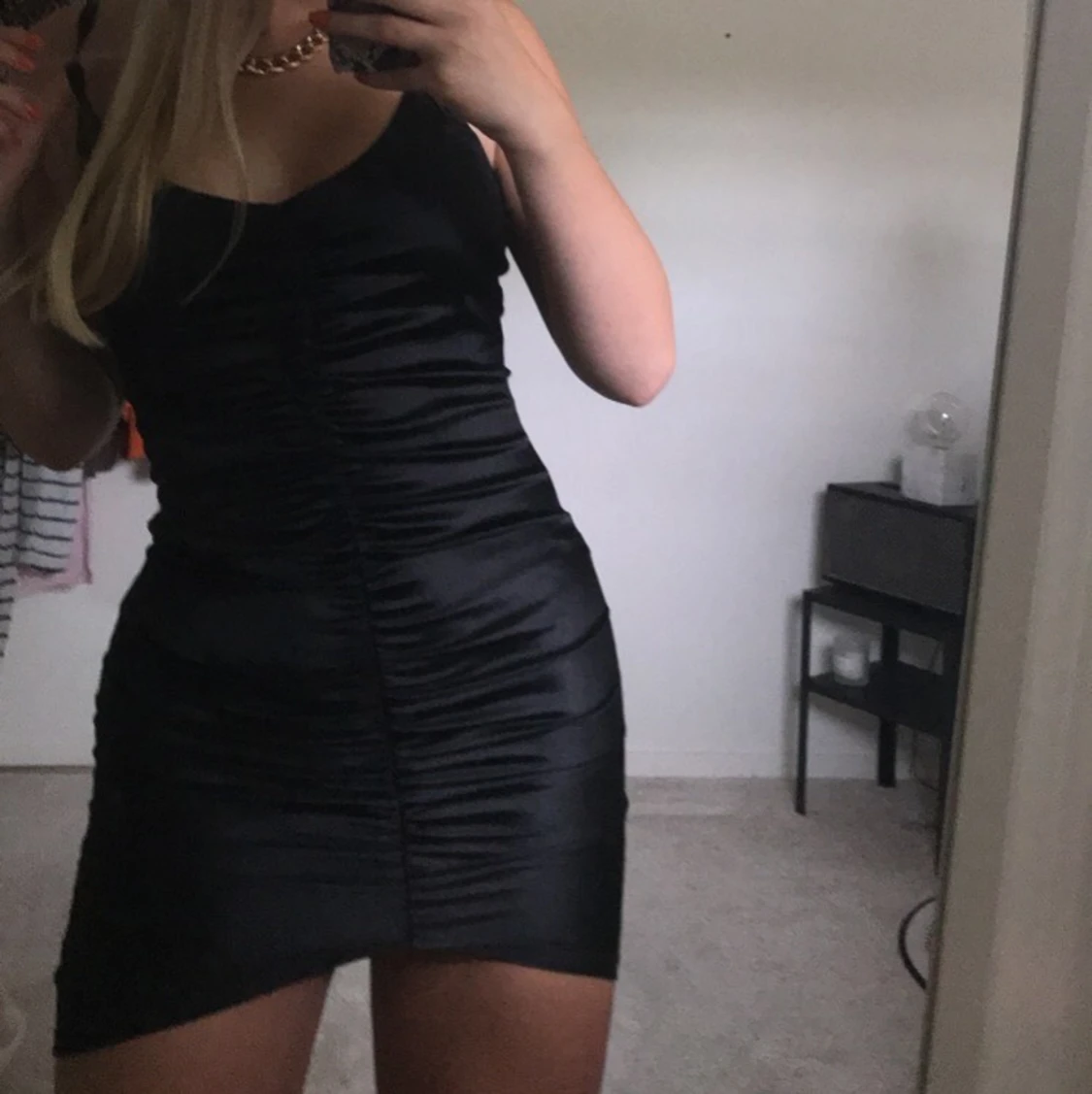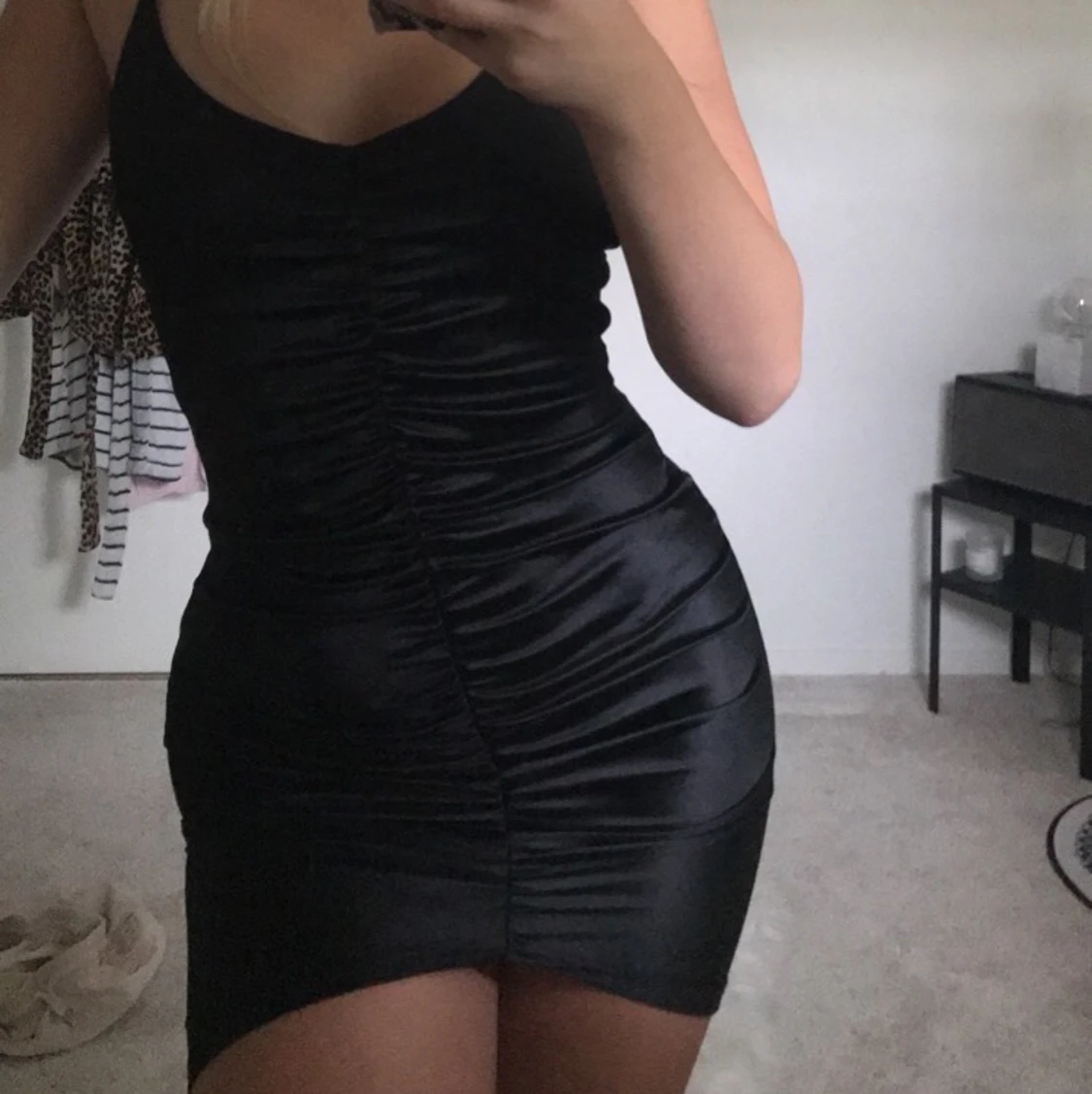As snygg festklänning i svart med reglerbara Axel band och en dragkedja där bak. Formar kroppen snyggt. Från Nelly.com
