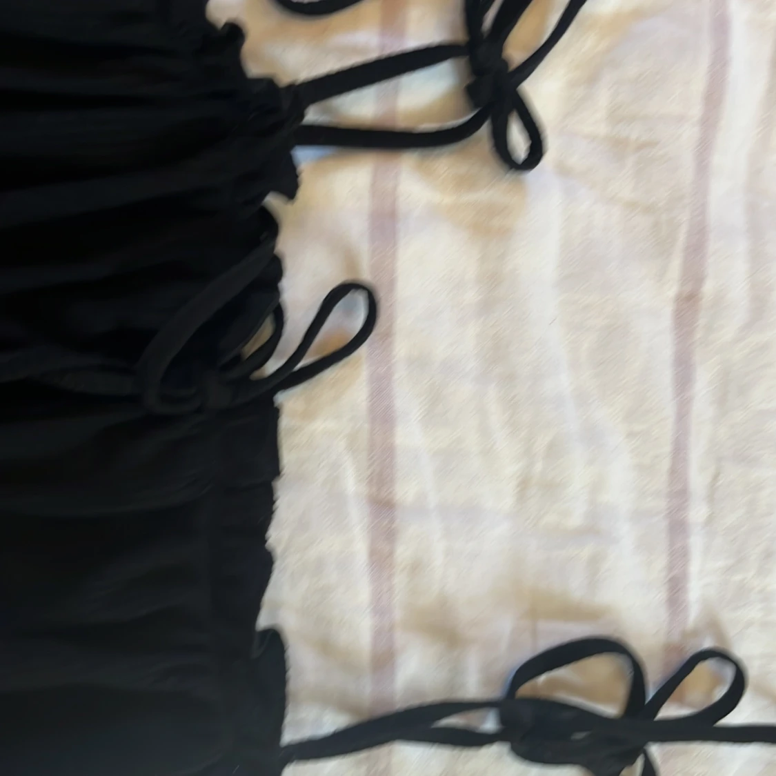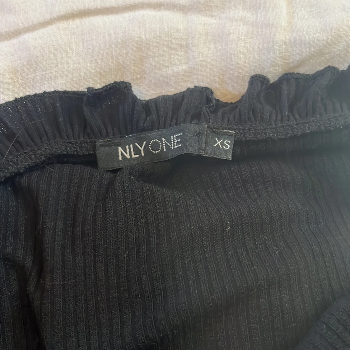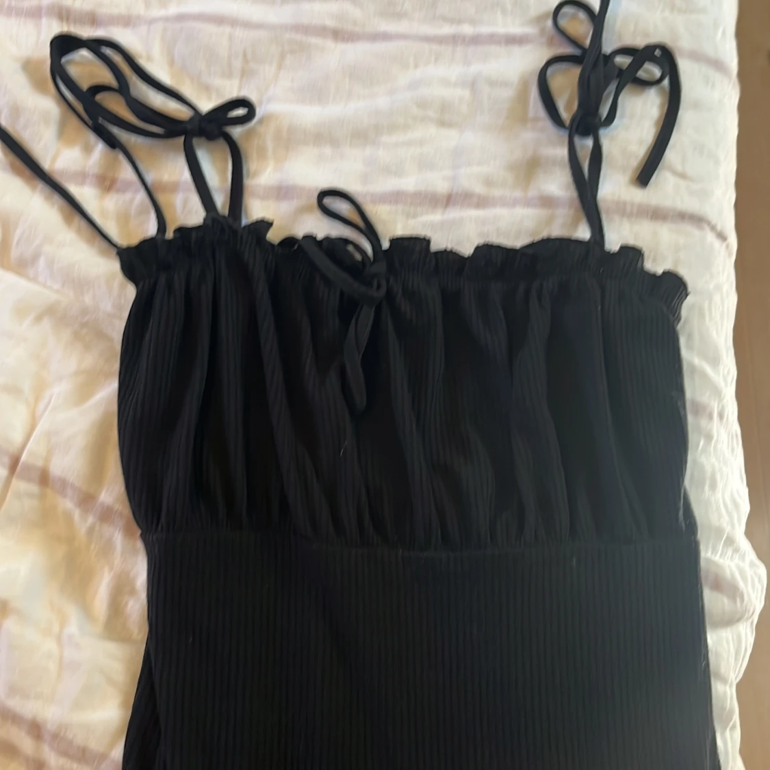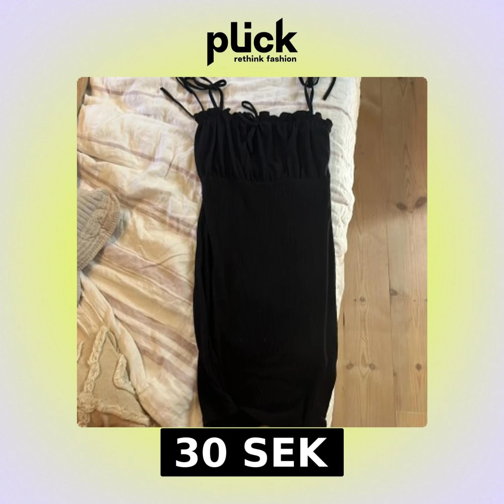 Svart festklänning från Nelly med smala axelband som man knyter. Den har även scrunch upptill. Den är i strl xs och i fint skick💕