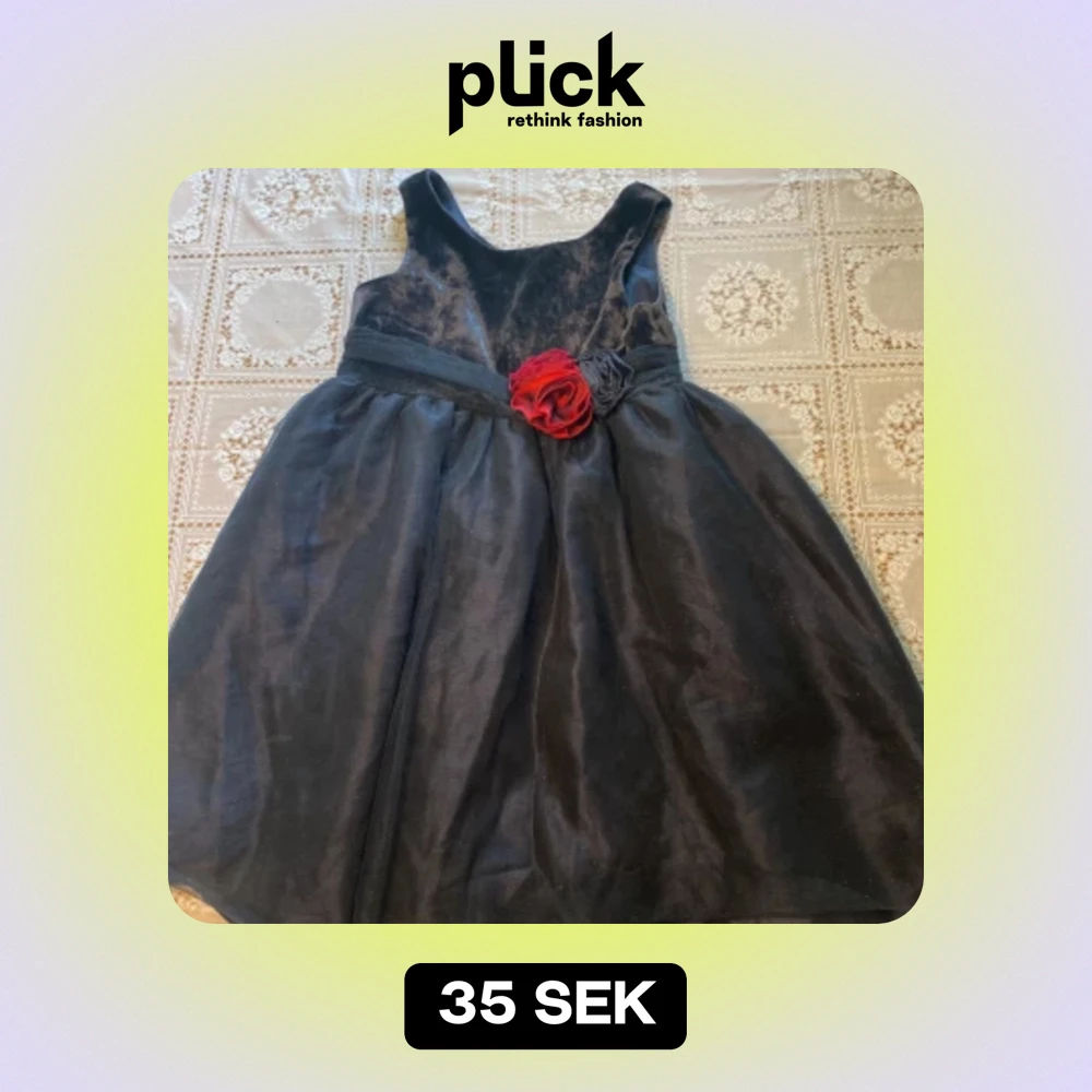 Fin festklänning för barn i storlek 116. Har två rosor vid midjan: en svart och en röd. Är från H&M & har använts 1 gång.