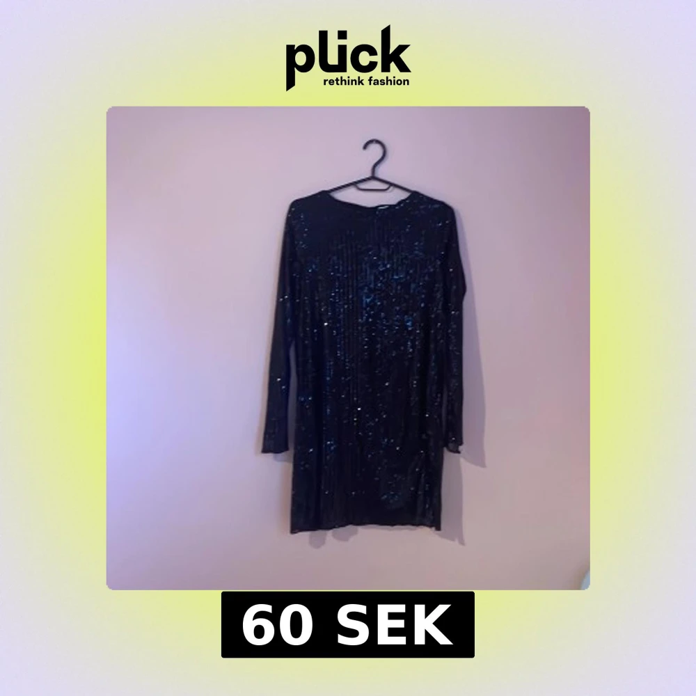 Snygg svart kortklänning från Lindex med glittriga paljetter över hela klänningen. Modellen har långärmade ärmar och en rak passform. Perfekt för dig som vill sticka ut med lite extra bling! Storlek 158/164, passar dig som är 12-14 år.