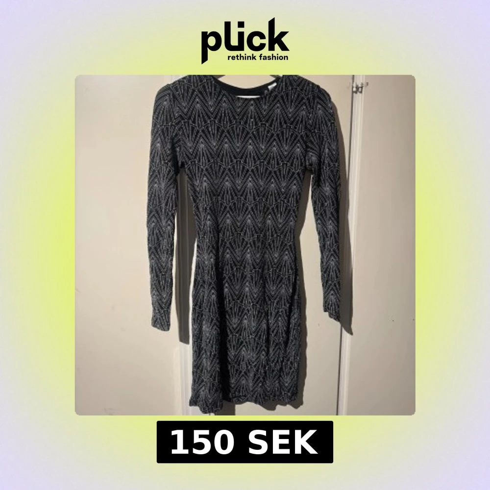 Snygg svart klänning med ett coolt geometriskt mönster i vitt.