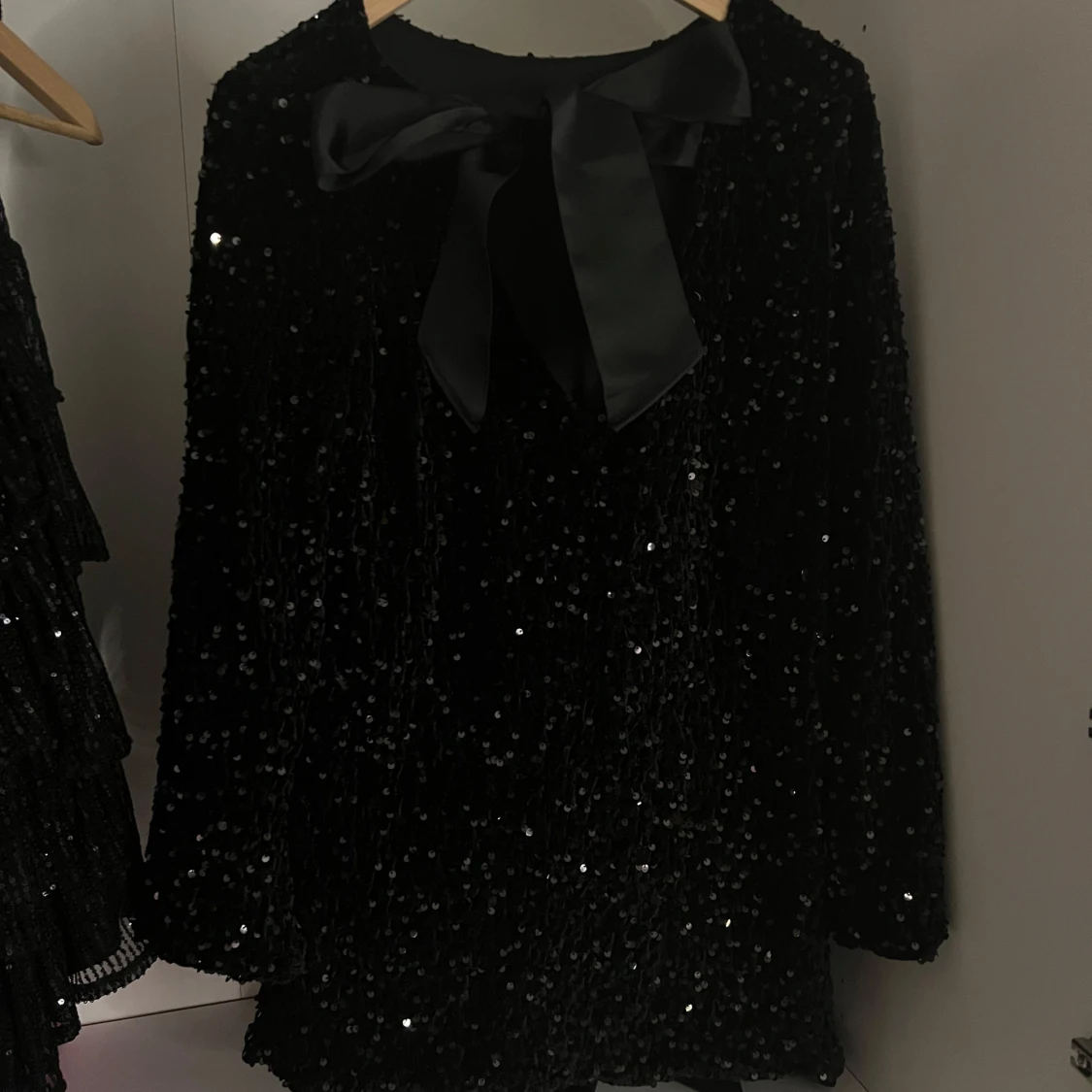 Snygg svart klänning täckt med paljetter💕 passar perfekt till nyår, fester eller finare middagar!!!🥂