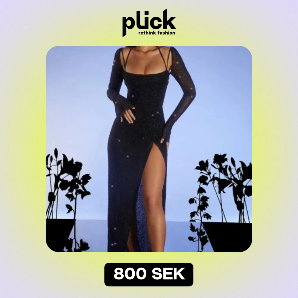 Säljer en superfin svart långklänning med pärlor från Ohpolly som är perfekt för fest eller nyår! Klänningen har långa ärmar och en djup slits på ena sidan som jag sytt ihop lite, jätte lätt att sprätta upp om man vill. Materialet är genomskinligt på underdelen men kommer med inbyggd bodysuit. Passar perfekt för en kväll ute eller en speciell tillställning. 💫