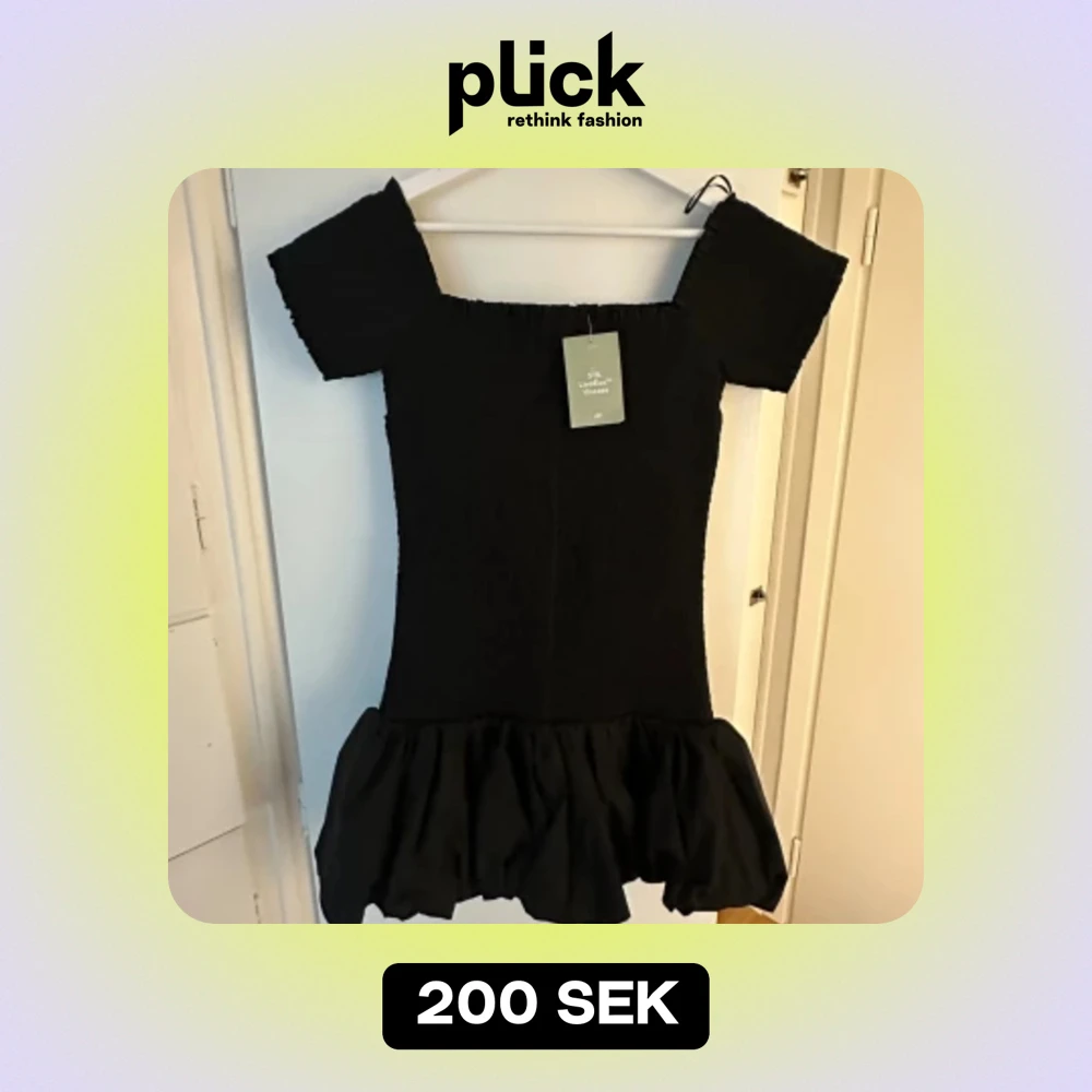 Super söt svart klänning med lite puff längst ner. Aldrig använd för lite för kort på mig. Stretchigt material så skulle säga att den passa small och medium💕