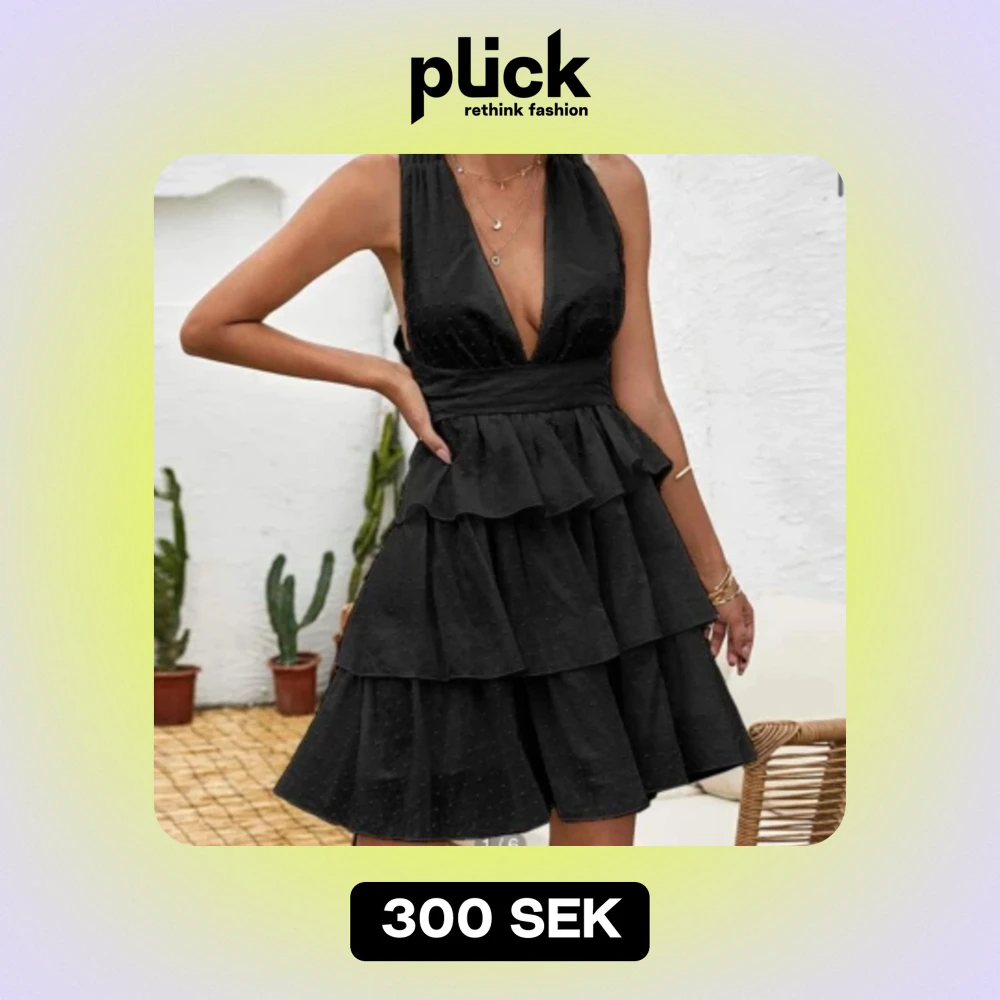 Svart klänning (oanvänd) med prickigt tyg, storlek xs/s från Shein, kan knytas på flera olika sätt