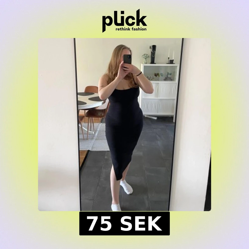 Väldigt fin midi klänning med slit och smala axelband. Klänningen är ribbad och i väldigt skönt material, är i storleken m men skulle säga att den funkar för även s och l då den är stretchig. 💕