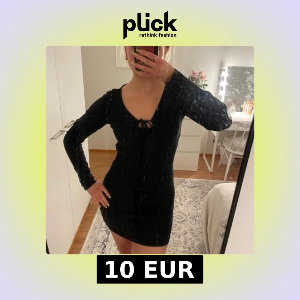 Snygg svart klänning från. lång ärm och knytning framtill. Perfekt för en stilren look.
