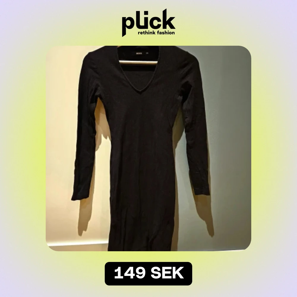 Svart klänning med v-ringning i ribbat material från bikbok. Gott skick.