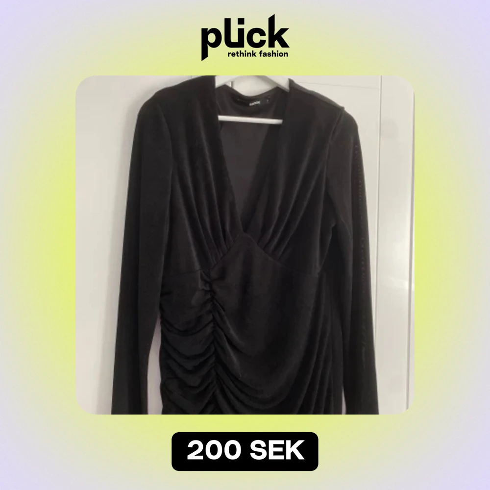 En svart V ringad Klänning i storlek (L) rekommenderas också för (M) från Bik bok. Material: Polyester och Elastan. Klänningen har använts Max 1 gång.