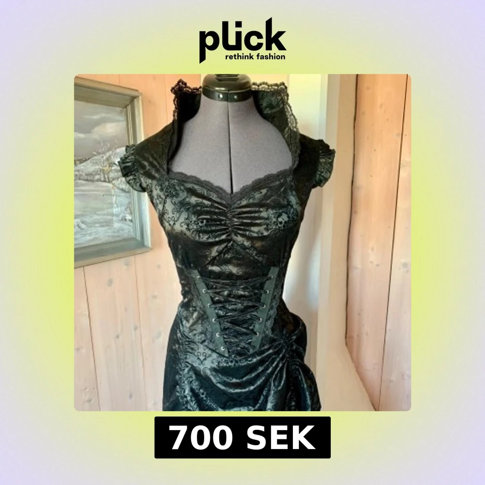 Svart klänning som tyvärr inte komma till användning. Så fin passform och man kan dra upp kjolen så den blir kortare. Skulle säga att den passar s-l då den går att snöra den som man vill 🖤