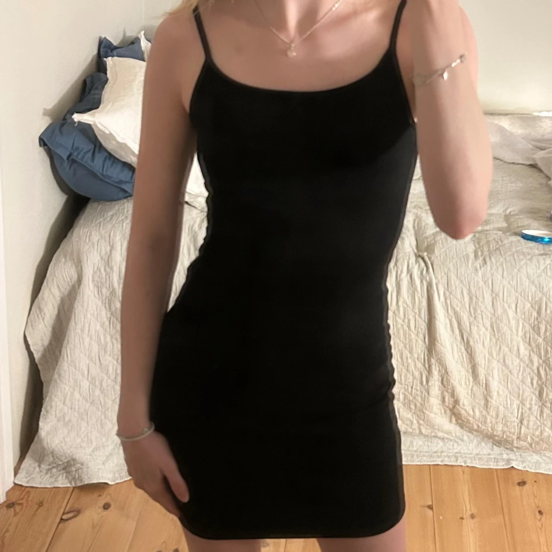 Svart klänning bik bon strl S, tjockare bomullstyg, använd en gång 50kr (köpt för 299kr)