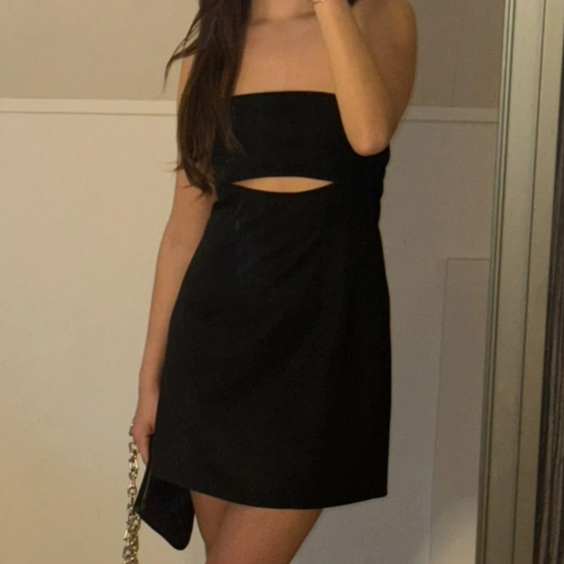 Svart mini klänning med cutout från zara. Helt oanvänd.