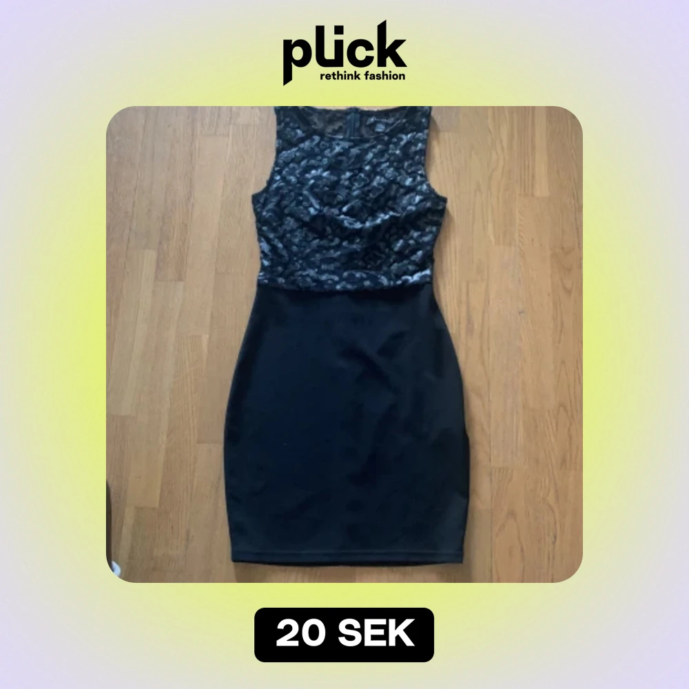 Säljer en elegant svart klänning från Amisu i storlek S. Klänningen har en ärmlös design med ett vackert spetsmönster på överdelen och en tight passform. Perfekt för festliga tillfällen!