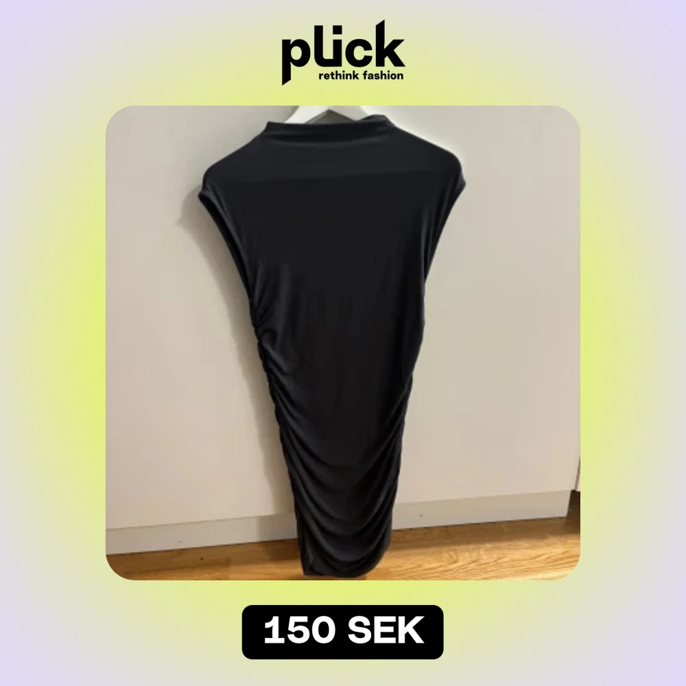 Säljer en elegant svart klänning från Gina Tricot. Den har en stilren design med en åtsittande passform och ärmlös stil. Klänningen är i nyskick!