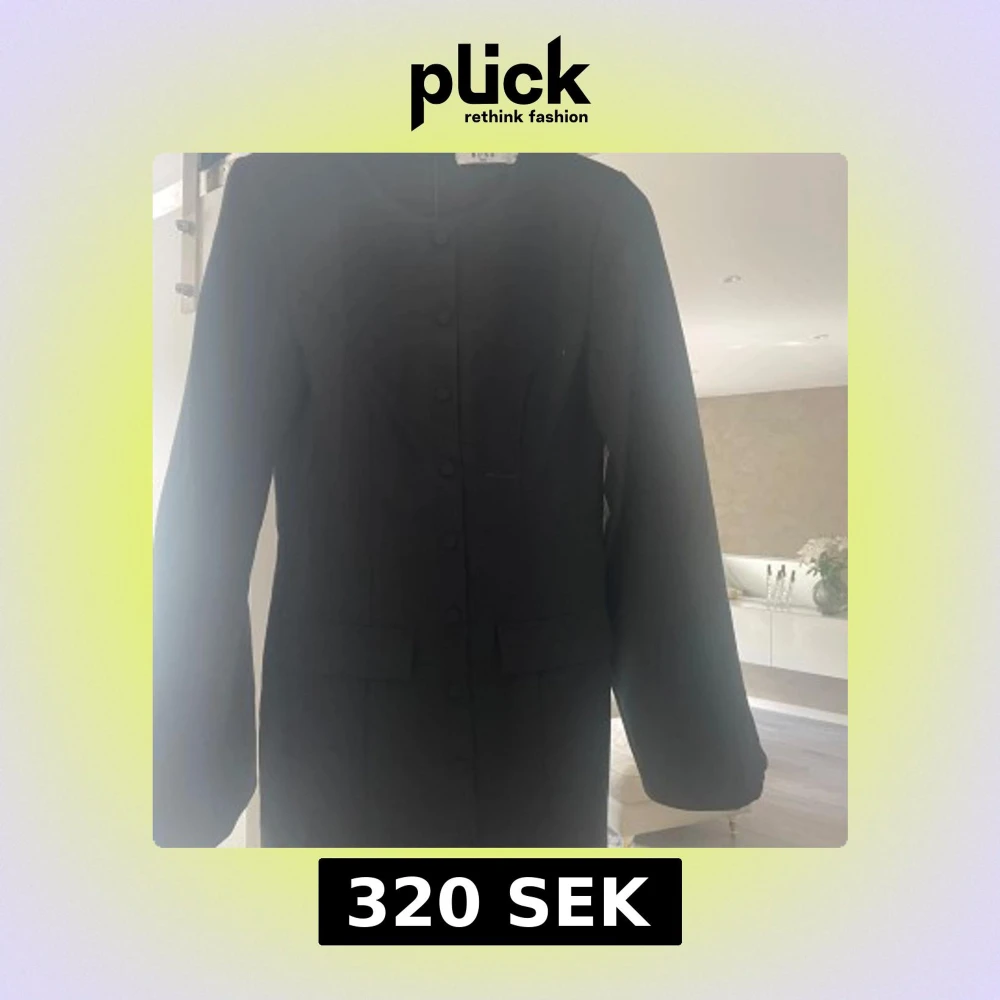 Stilren svart klänning från NA-KD med långa ärmar och knappar framtill. Klänningen har en rak passform och två dekorativa fickor framtill. Perfekt för dig som gillar minimalistisk och klassisk stil.