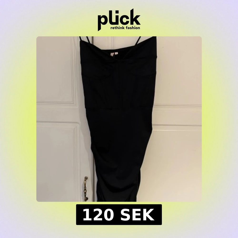 Elegant svart klänning från Nelly med smala axelband och en figurnära passform. Perfekt för en stilren look.