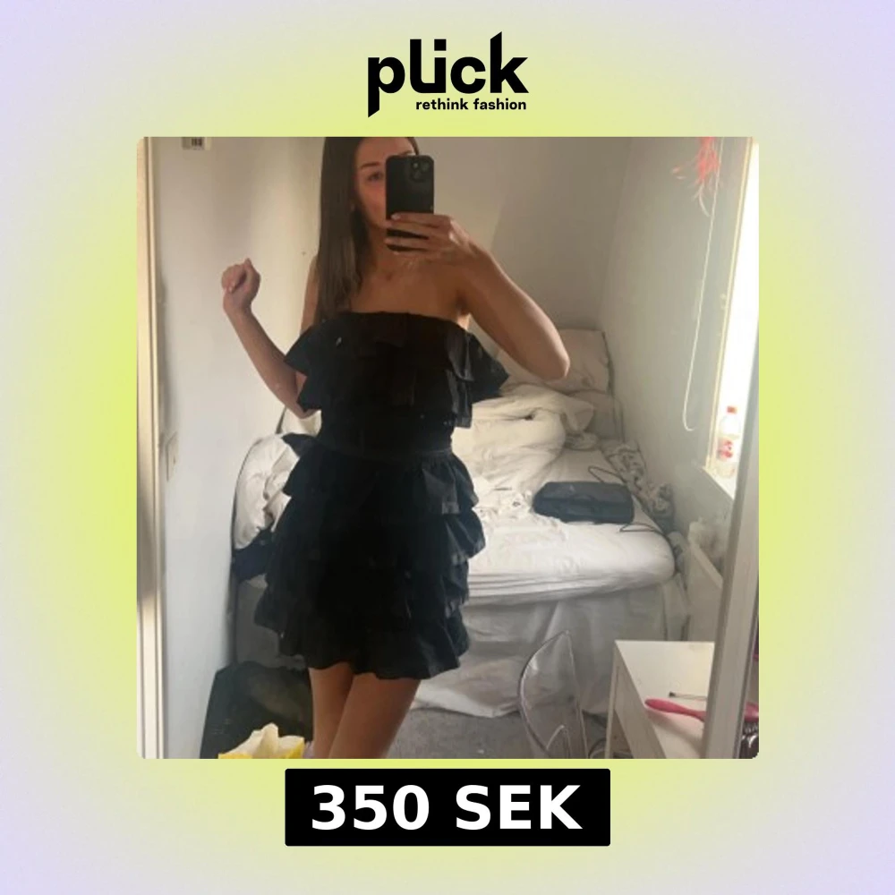 Snygg svart klänning från Zetterberg men volanger. Jättefin att ha en utekväll med vänner eller på fest🥂ej använd av mig men köpt på Sellpy för 450 kr💞