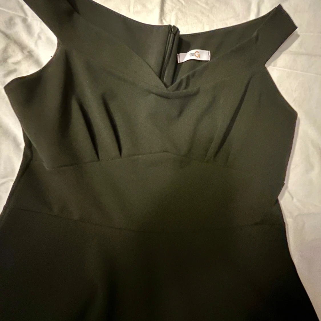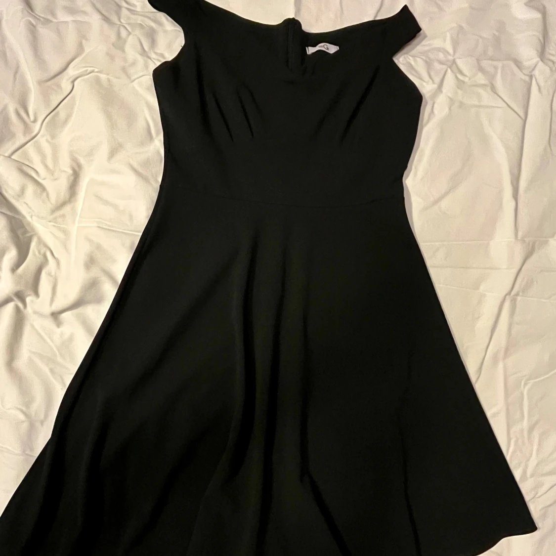 Elegant svart klänning från Wal G med offshoulder-design och dragkedja i ryggen. Perfekt för en stilren look.