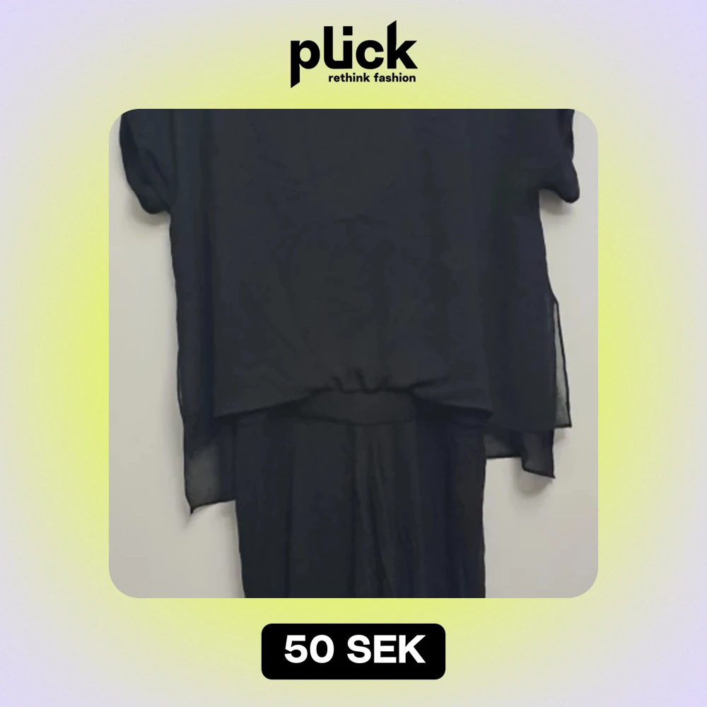 En elegant svart klänning från Zara med ett transparent yttre lager och en underklänning. Klänningen har korta ärmar och en lös passform.