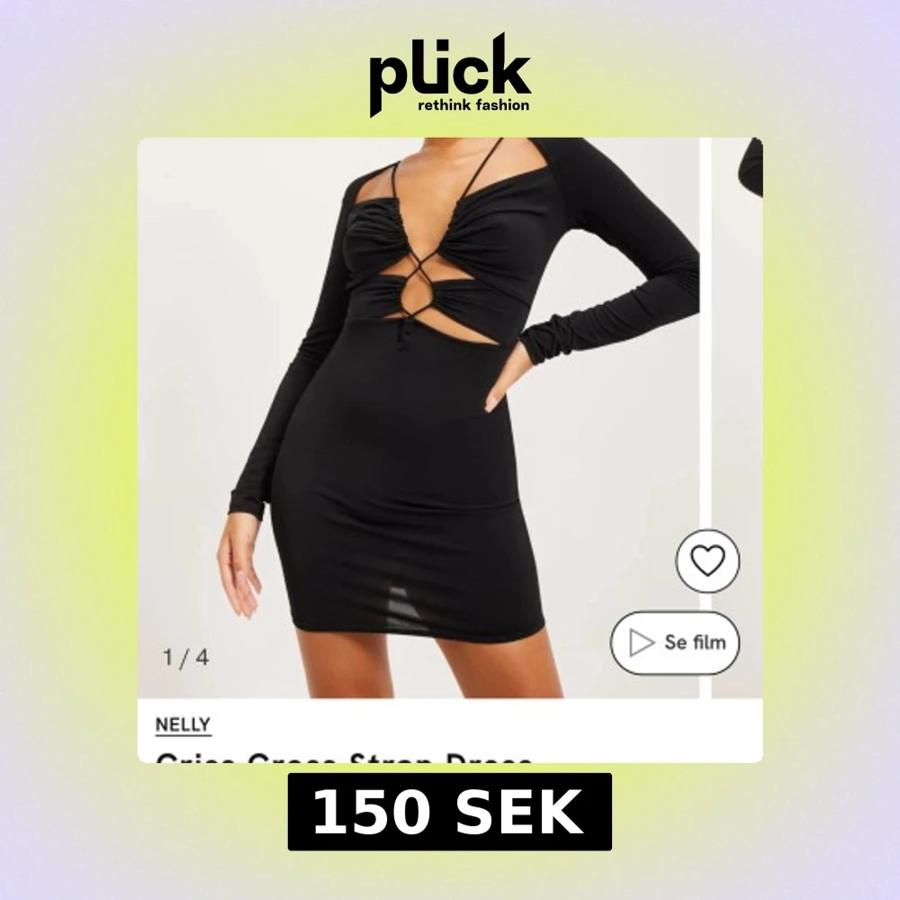 Trendig svart klänning från Nelly med criss cross-detaljer framtill. Den har en tight passform och långa ärmar, perfekt för fest eller till nyår. Klänningen är kort och har en djärv design som framhäver figuren. Köpt förra året endast använd 1 gång. Storlek S. Säljer för 150kr + frakt💕