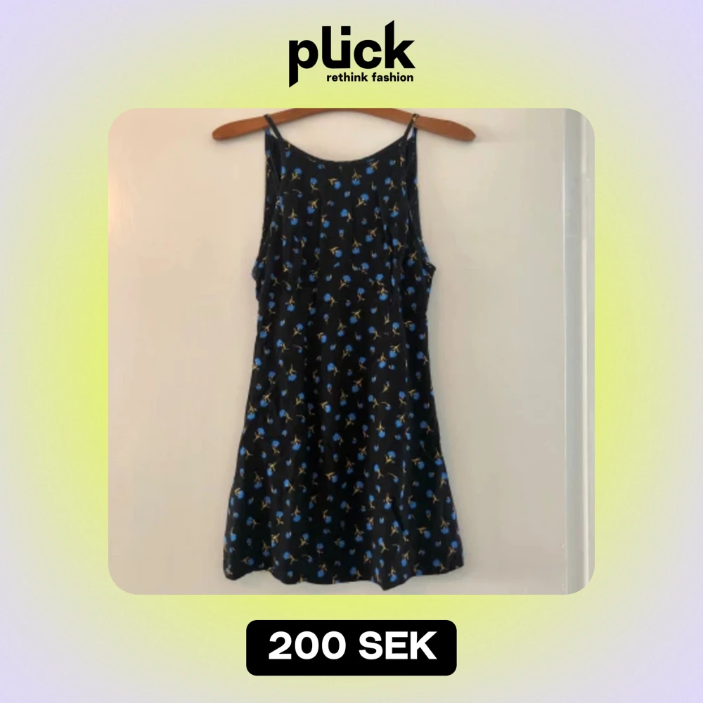 Söt klänning med blommigt mönster. Klänningen har en öppen rygg med snörning.