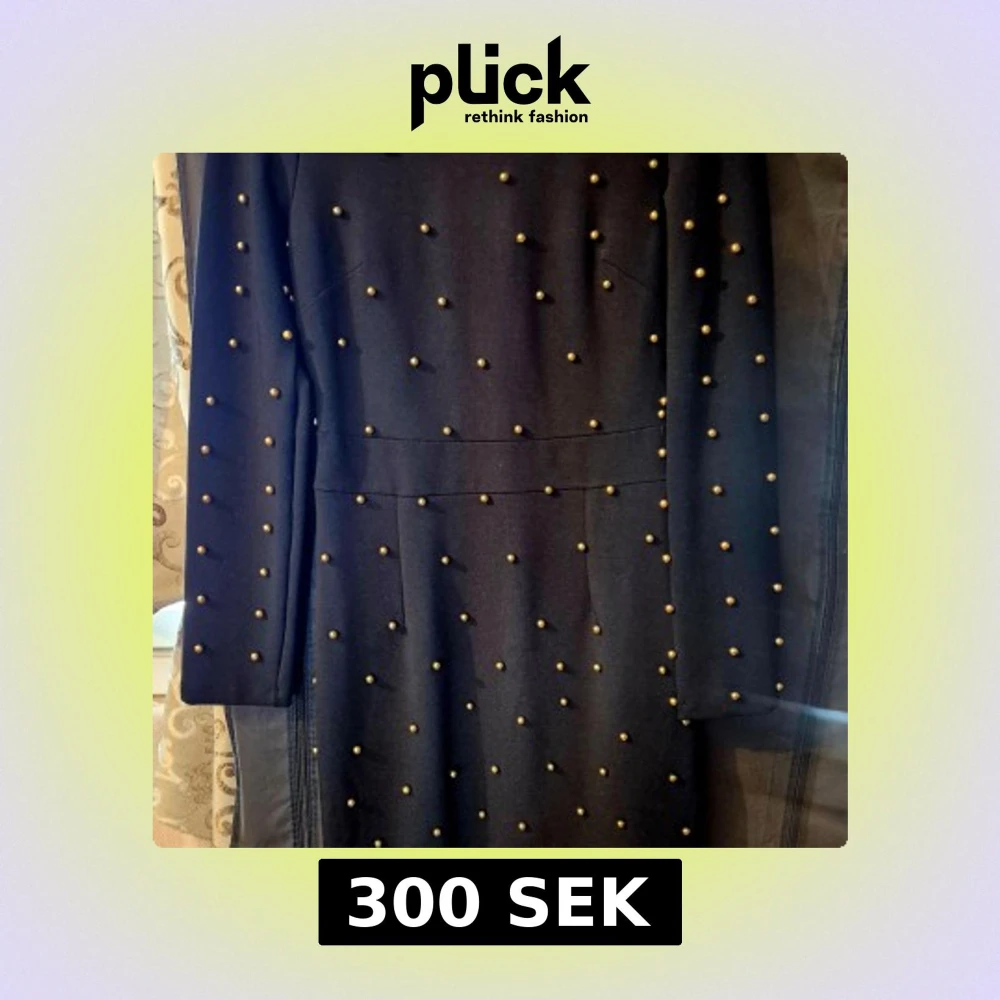 Elegant svart klänning dekorerad med små pärlor över hela ytan. Klänningen har långa ärmar och en figurnära passform som ger en stilren look. Perfekt för en kväll ute eller en speciell tillställning. Klänning har använts bara 1 gång