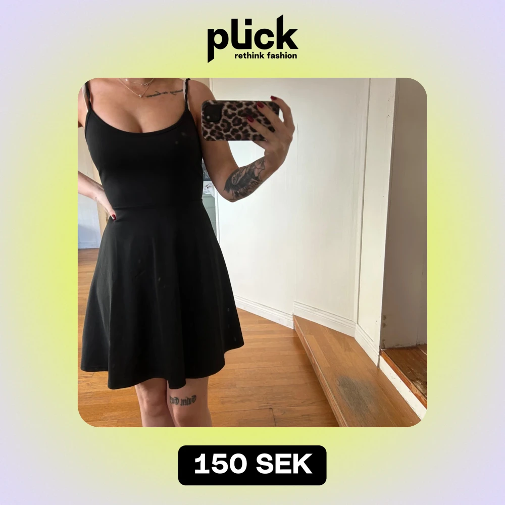 Säljer en stilren svart klänning med smala axelband. Perfekt för både vardag och fest! Klänningen har en enkel och elegant design med en kort längd. Materialet känns mjukt och bekvämt mot huden. Hög stretch.