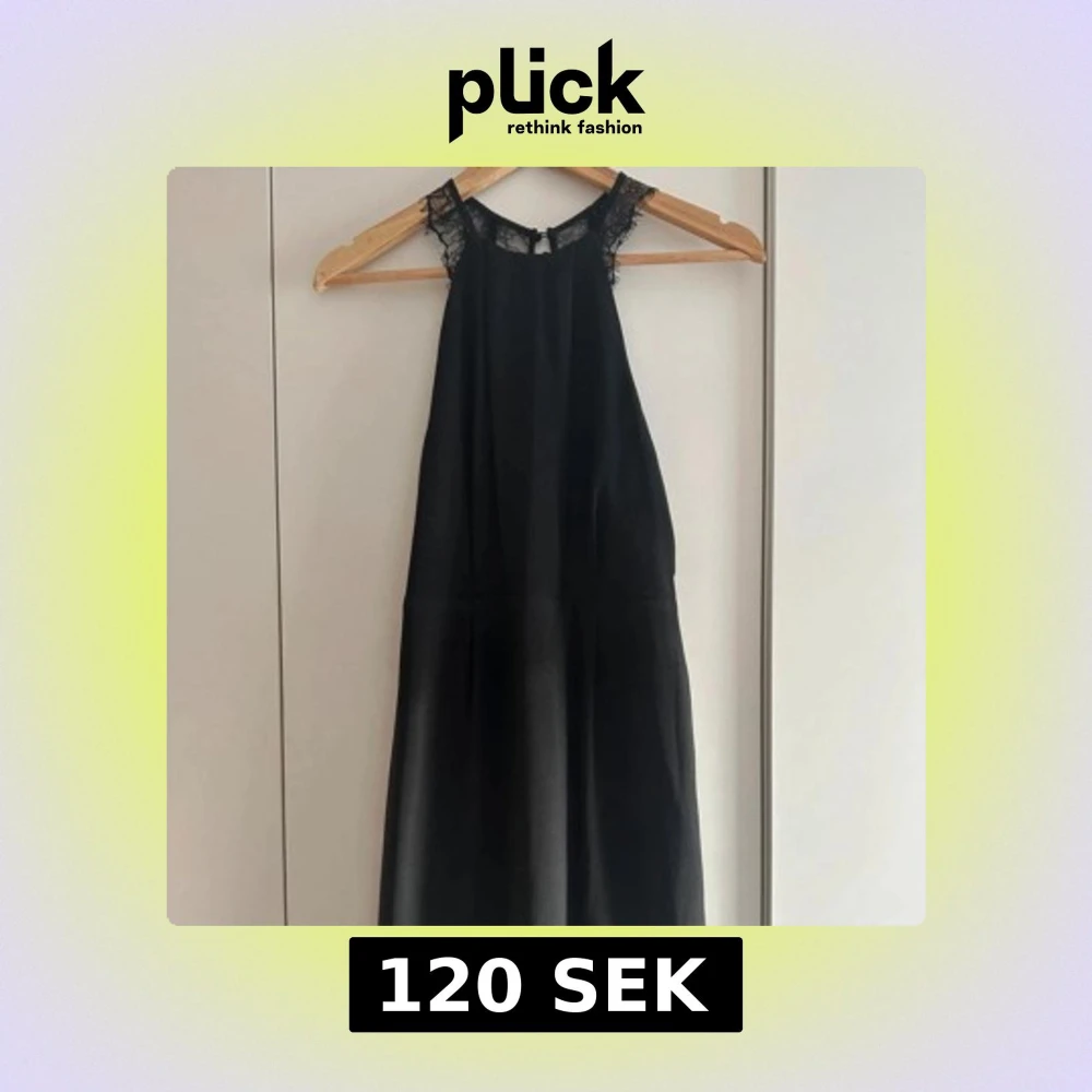 Supersnygg svart klänning med spets vid axlarna och öppen rygg. Klänningen har en rak, något lös passform och är ärmlös. Perfekt för dig som vill ha en stilren look med en touch av elegans