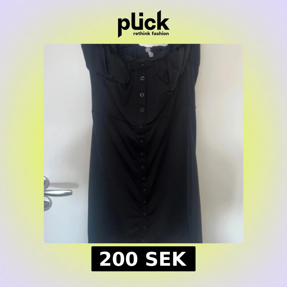 Supersnygg svart klänning med volangdetaljer på axelbanden och knappar hela vägen framtill. Knapparna kan inte öppnas. Klänningen har en feminin passform och är perfekt för dig som gillar en stilren look med lite extra edge. Materialet känns mjukt och följsamt.