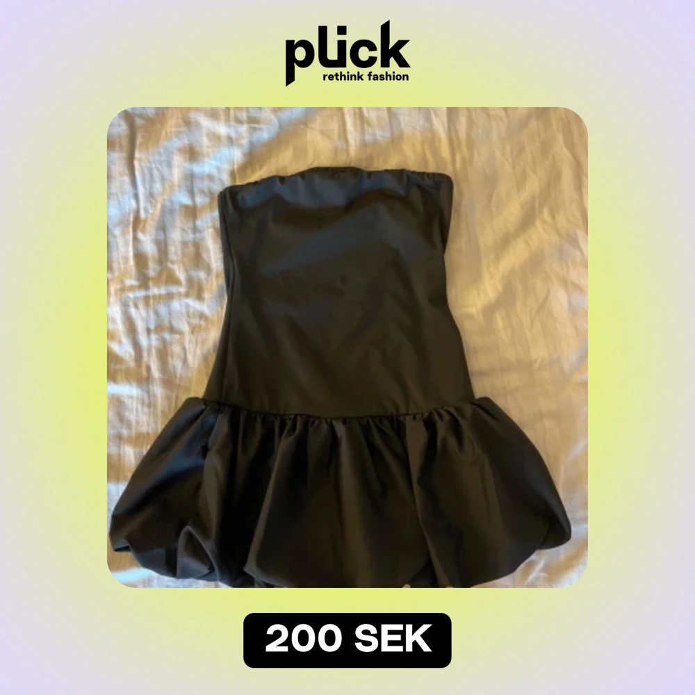 En svart kort klänning. Klänningen trendar över nätet och är en snygg fest klänning. En tajt klänning med en puff detalj längst ned. I storlek S.