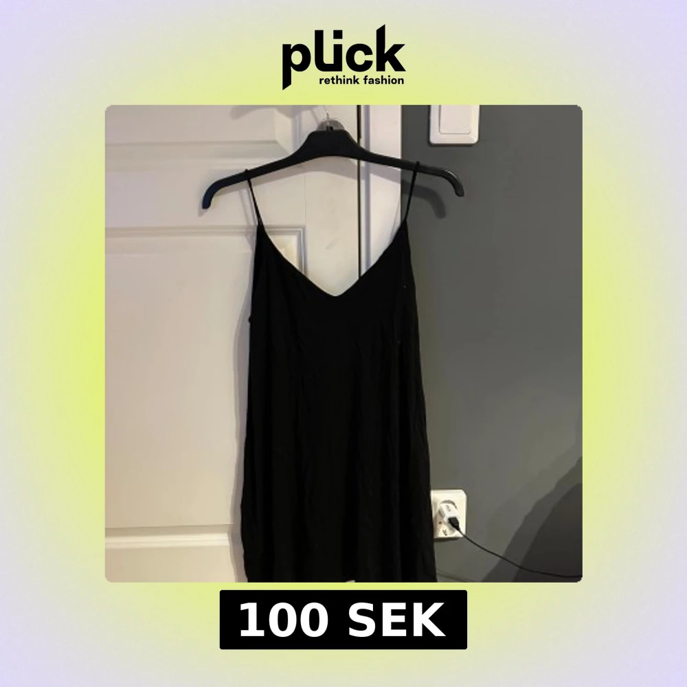En svart, enkel och stilren kort klänning från BASIC med smala axelband och v-ringning. Klänningen har en lös passform och är perfekt för dig som gillar minimalistisk stil. Materialet känns lätt och svalt, vilket gör den skön att bära under varma dagar.