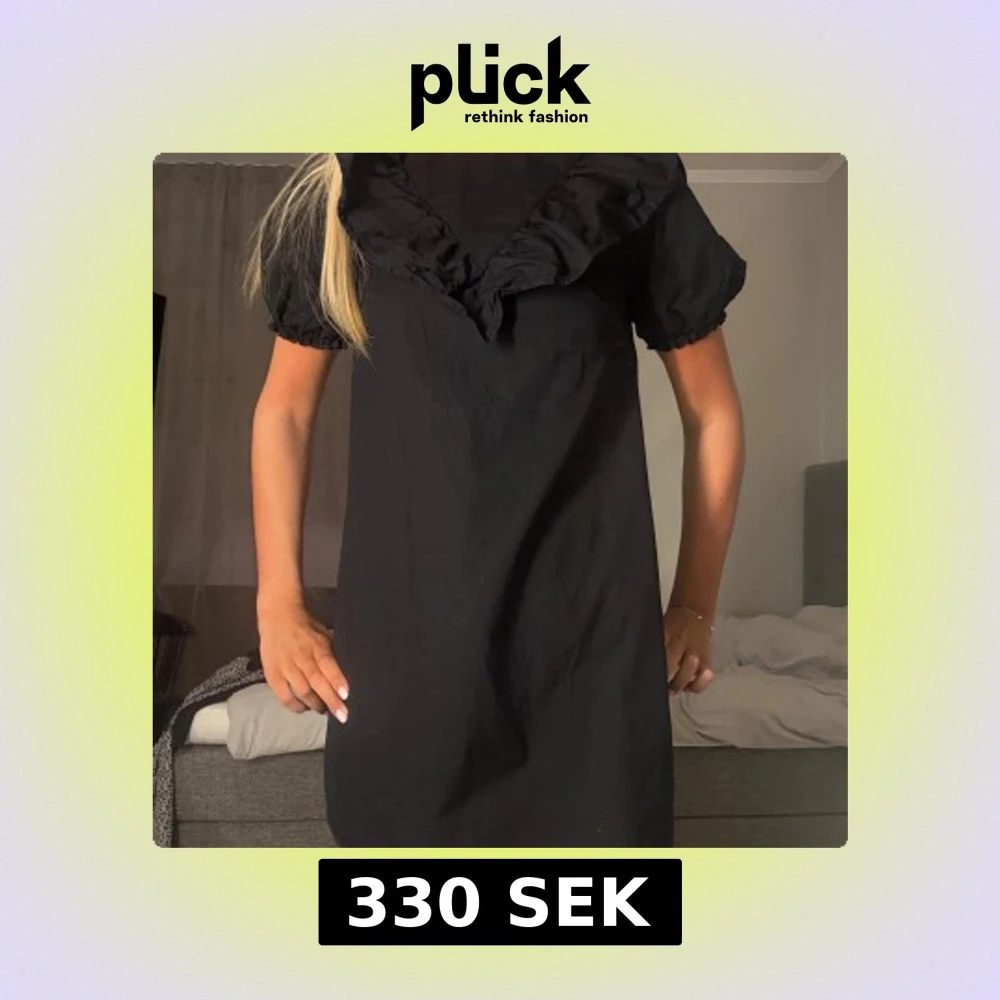 Supersöt svart kortklänning med puffärmar och stor volangkrage. Klänningen har en loose passform och är perfekt för dig som gillar en trendig och bekväm stil. Materialet känns lätt och passar bra till många tillfällen.